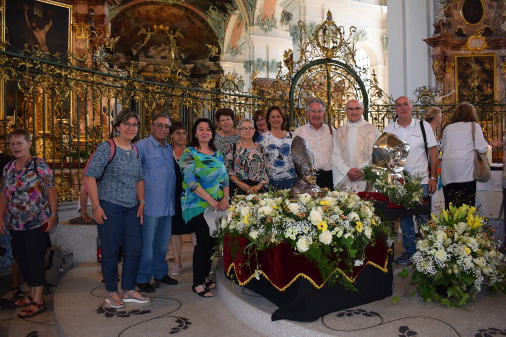 Aus Anlass des 24. Columban’s Day, der vom Bistum, der Dompfarrei und dem Verein Kolumbansweg Schweiz am 8./9. Juli 2023 in St. Gallen ausgerichtet wurde, besuchte uns eine Gruppe von 13 Personen aus Pfarrei und Gemeinde Moggio, geführt vom Parroco Abate, Mons. Lorenzo Caucig, und Dr. med. Bruno Lucci. Der Kanton besorgte die Unterkunft und ermöglichte eine Führung durch den Ausstellungssaal (St.Galler Klosterplan). Unser Verein bereitete den Besuch vor, begleitete die Gäste und lud sie am Samstag zu einem Ausflug mit Mittagessen in die Schaukäserei Stein ein.